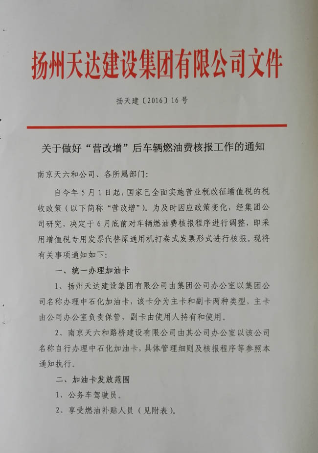 關(guān)于做好“營改增”后車輛燃油費(fèi)核報(bào)工作的通知