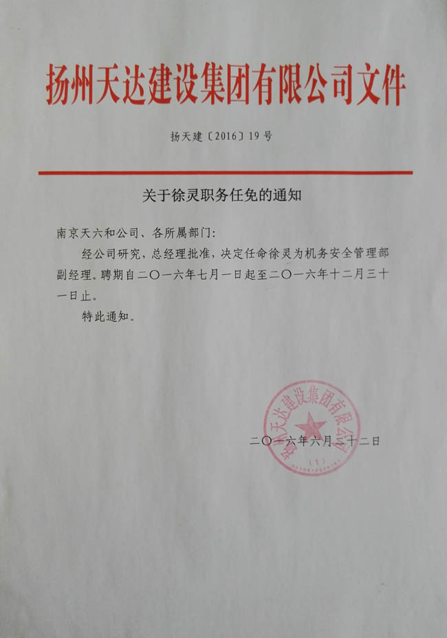 關(guān)于徐靈職務(wù)任免的通知