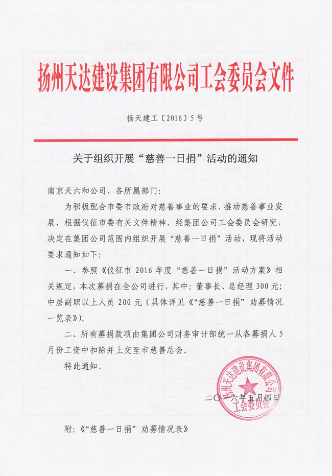 關(guān)于組織開展“慈善一日捐”活動的通知