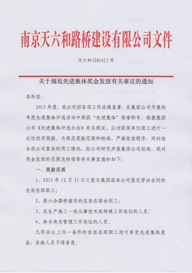 關(guān)于規(guī)范先進(jìn)集體獎(jiǎng)金發(fā)放有關(guān)事宜的通知