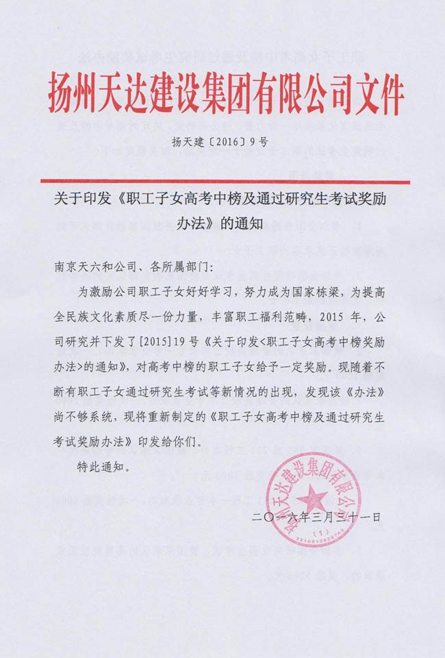 關(guān)于印發(fā)《職工子女高考中榜及通過研究生考試獎(jiǎng)勵(lì)辦法》的通知