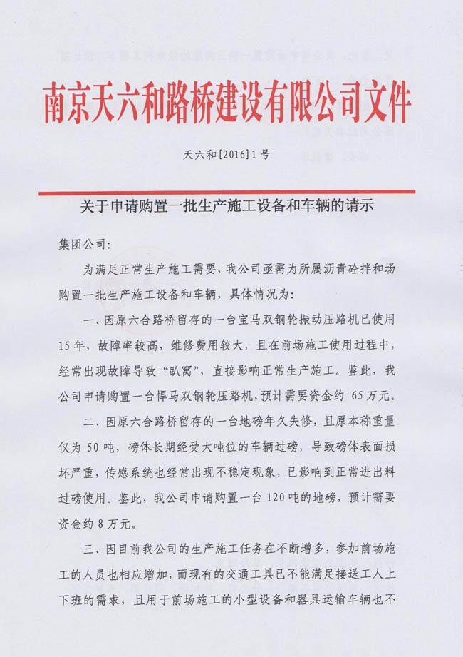 關(guān)于申請購置一批生產(chǎn)施工設(shè)備和車輛的請示