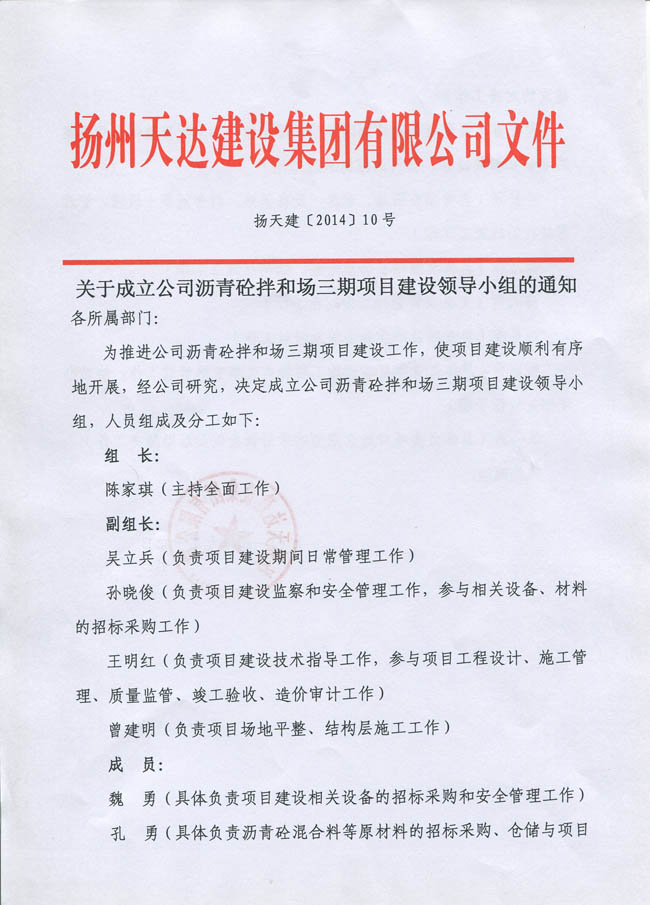 關于成立公司瀝青砼拌和場三期項目建設領導小組的通知