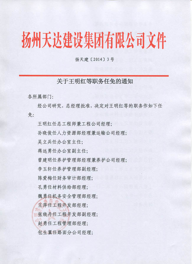 關(guān)于王明紅等職務(wù)任免的通知