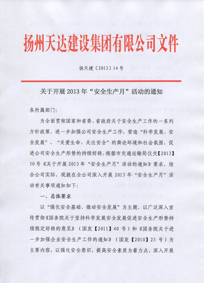 關(guān)于開展2013年“安全生產(chǎn)月”活動的通知