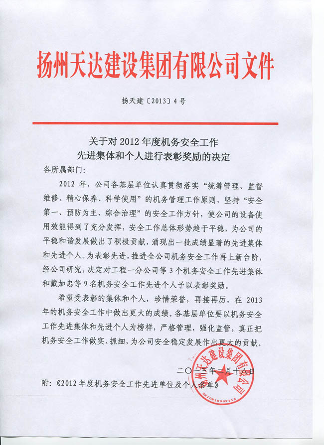 關(guān)于對2012年度機務(wù)安全工作先進集體和個人進行表彰獎勵的決定