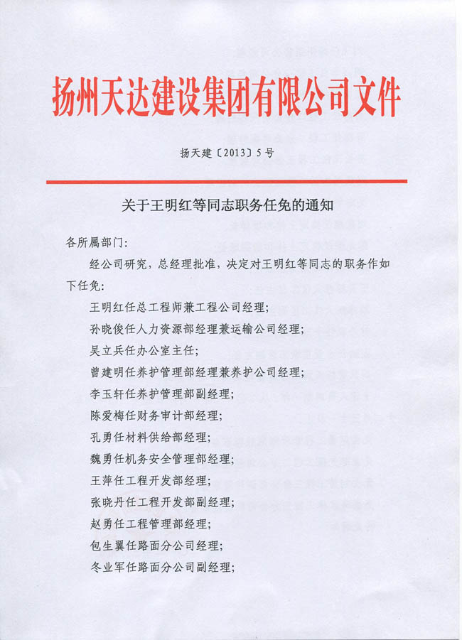 關(guān)于王明紅等同志職務(wù)任免的通知