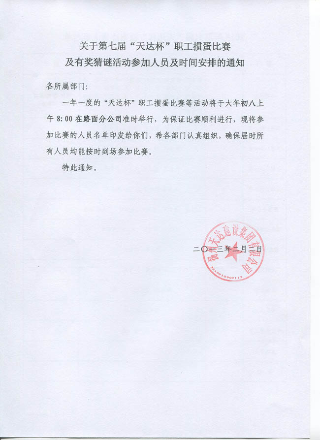 第七屆職工摜蛋比賽通知