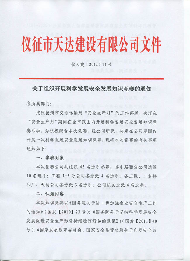 關(guān)于組織開展科學(xué)發(fā)展安全發(fā)展知識(shí)競賽的通知