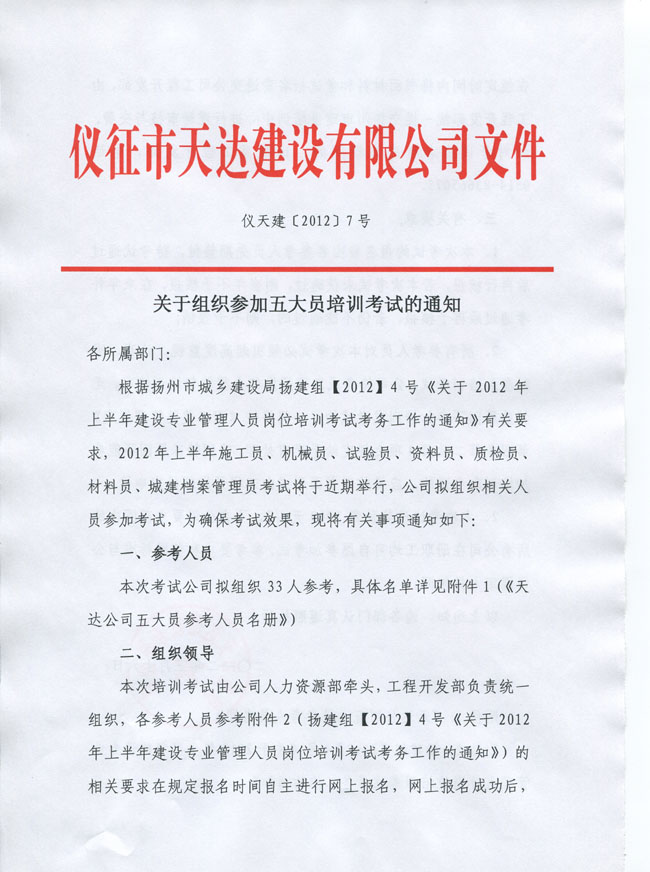 關(guān)于組織參加五大員培訓(xùn)考試的通知