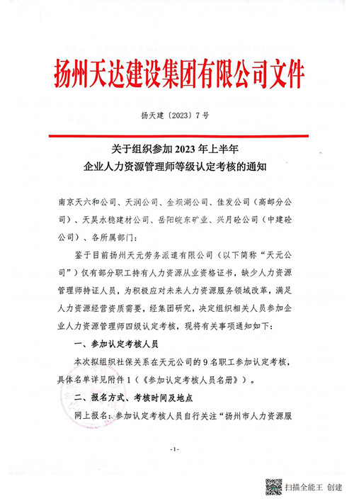 關(guān)于組織參加2023年上半年企業(yè)人力資源管理師等級(jí)認(rèn)定考核的通知