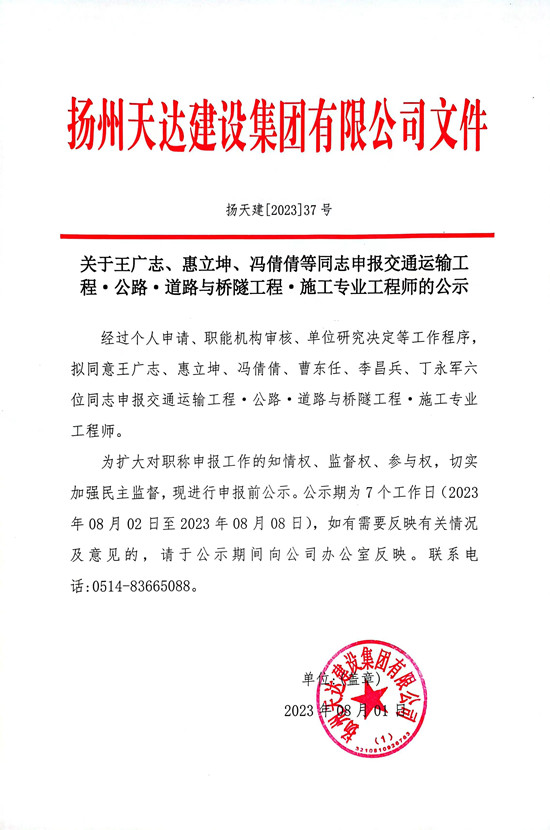 關(guān)于王廣志等同志申報(bào)交通運(yùn)輸工程?公路?道路與橋隧工程?施工專業(yè)工程師的公示