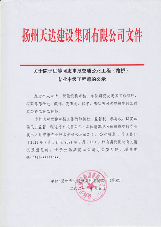關(guān)于陳子進(jìn)等同志申報(bào)交通公路工程(路橋)專業(yè)中級工程師的公示