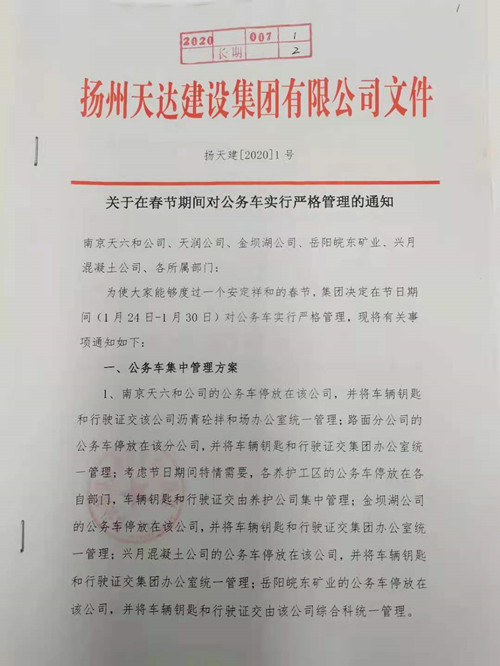 關(guān)于在2020年春節(jié)期間對公務(wù)車實(shí)行嚴(yán)格管理的通知