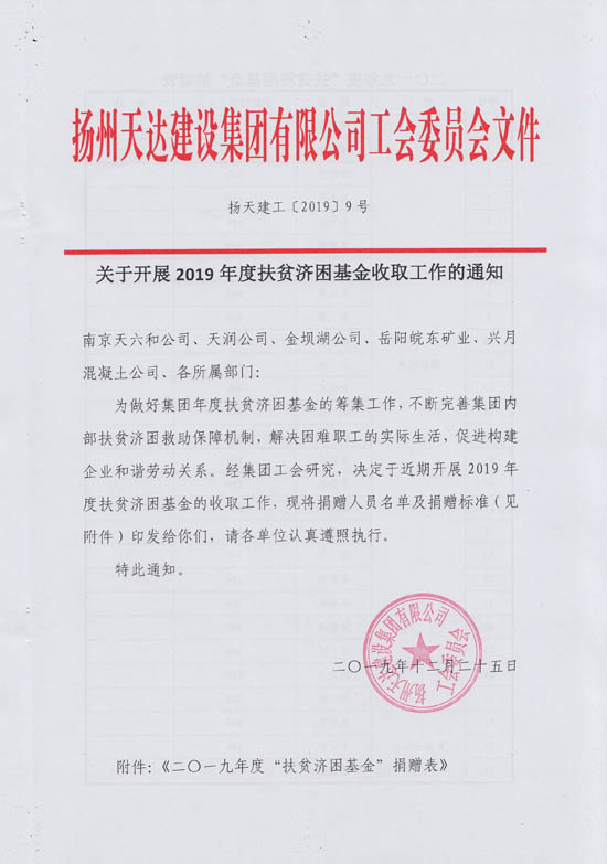 關(guān)于開展2019年度扶貧濟困基金收取工作的通知