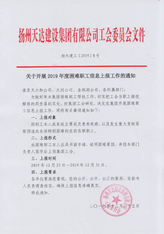 關(guān)于開展2019年度困難職工信息上報(bào)工作的通知