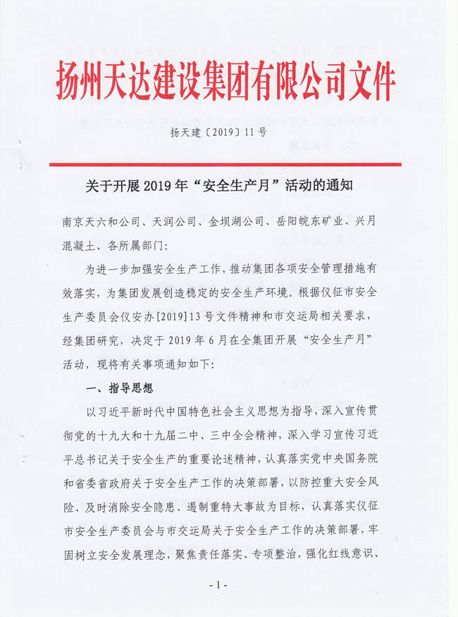 關(guān)于開展2019年“安全生產(chǎn)月”活動的通知