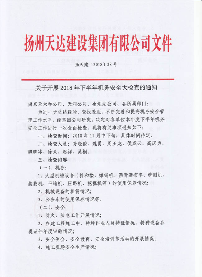 關(guān)于開展2018年下半年機務(wù)安全大檢查的通知