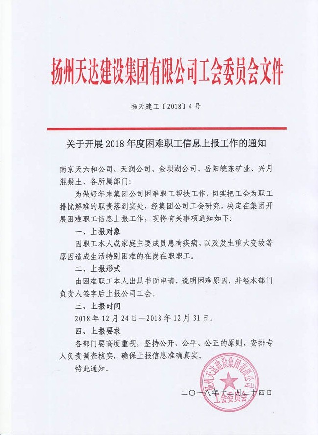關(guān)于開展2018年度困難職工信息上報工作的通知