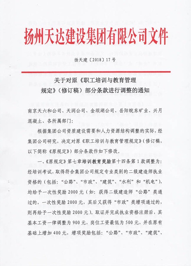 關(guān)于對(duì)原《職工培訓(xùn)與教育管理規(guī)定》(修訂稿)部分條款進(jìn)行調(diào)整的通知