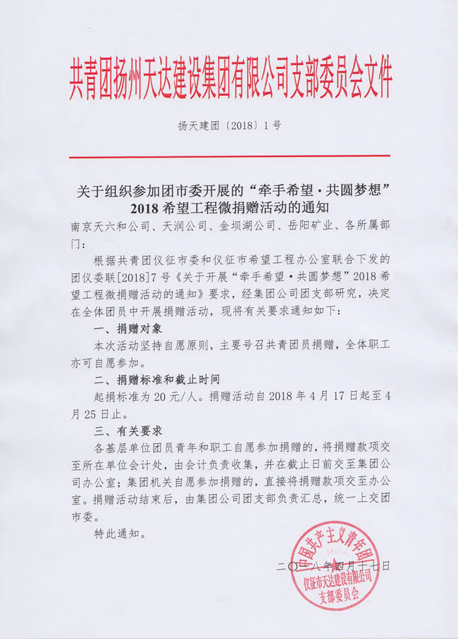 關于組織參加團市委開展的“牽手希望 共圓夢想”2018希望工程微捐贈活動的通知