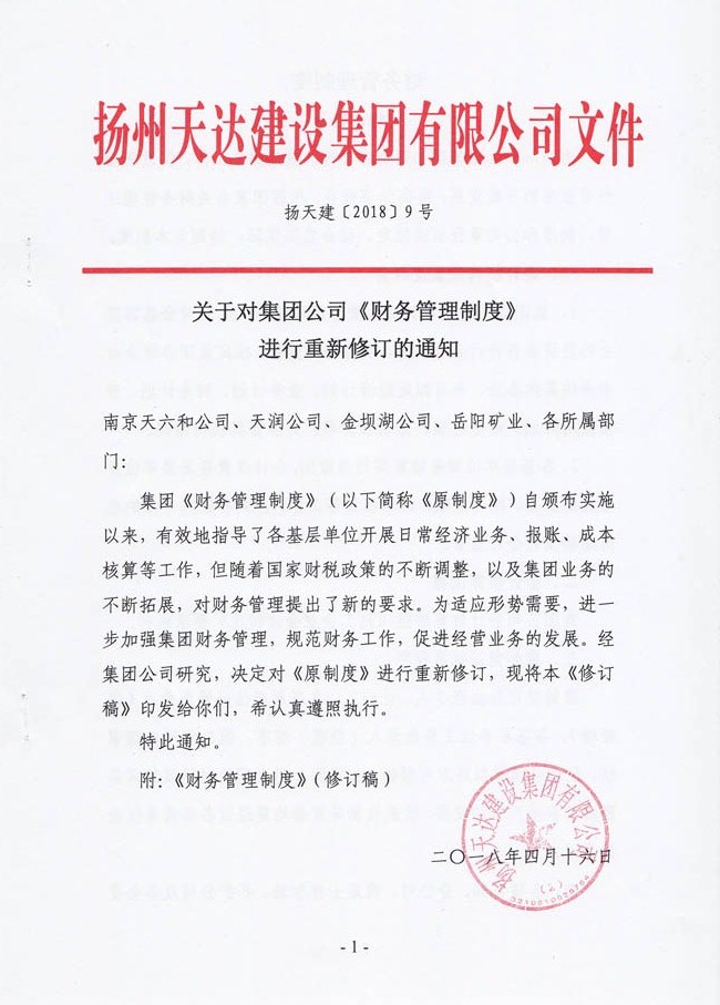 關于對集團公司《財務管理制度》進行重新修訂的通知