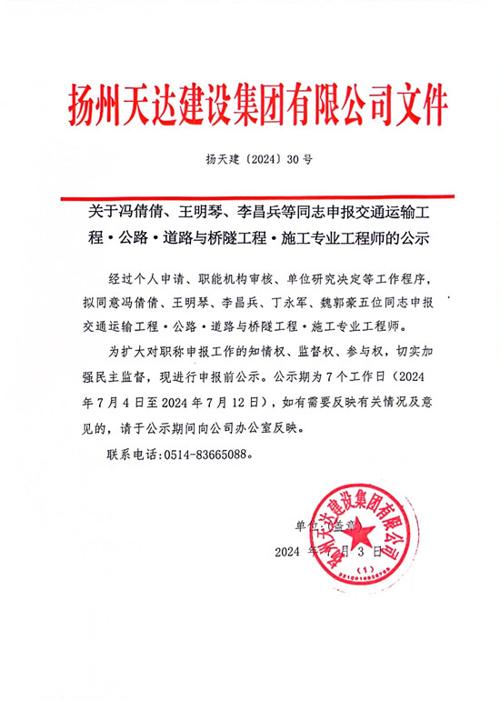 關(guān)于馮倩倩、王明琴、李昌兵等5名同志申報(bào)交通運(yùn)輸工程?公路?道路與橋隧工程?施工專業(yè)工程師職稱的公示