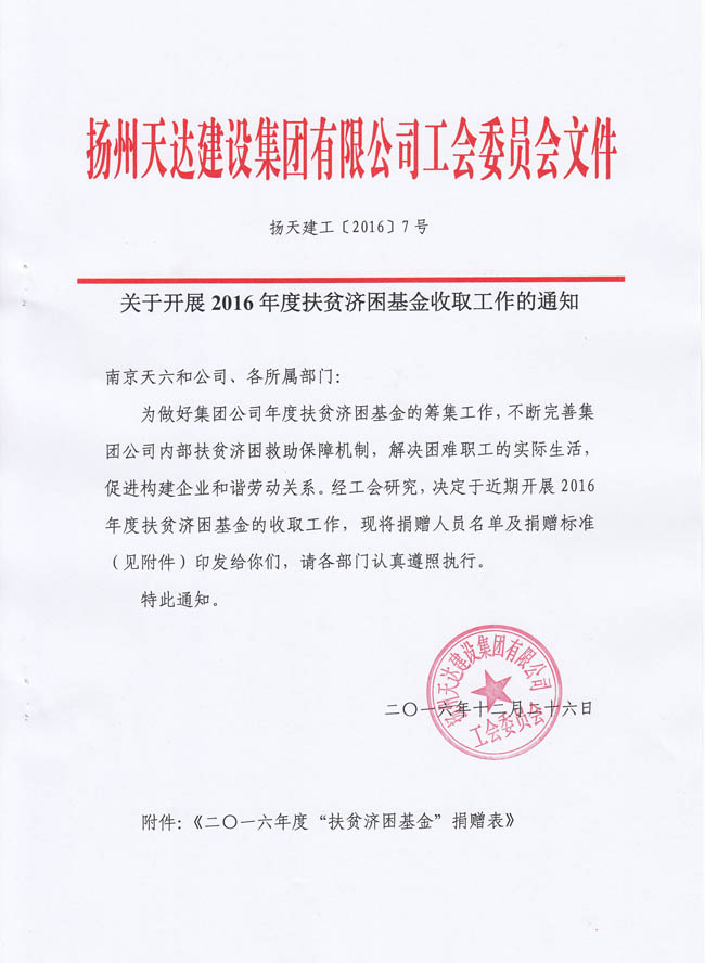 關(guān)于開展2016年度扶貧濟(jì)困基金收取工作的通知
