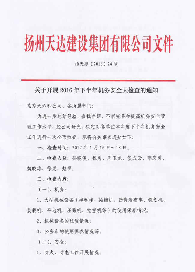 關(guān)于開展2016年下半年機(jī)務(wù)安全大檢查的通知