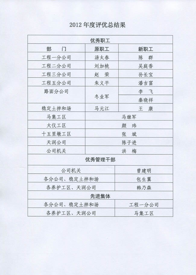 現(xiàn)公布公司2012年度各類考試通過人員名單......