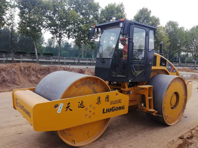 圖為新購(gòu)置的柳工牌壓路機(jī)