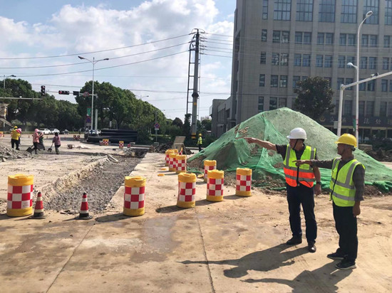 圖為檢查組對寶應(yīng)縣寶勝路工地檢查現(xiàn)場