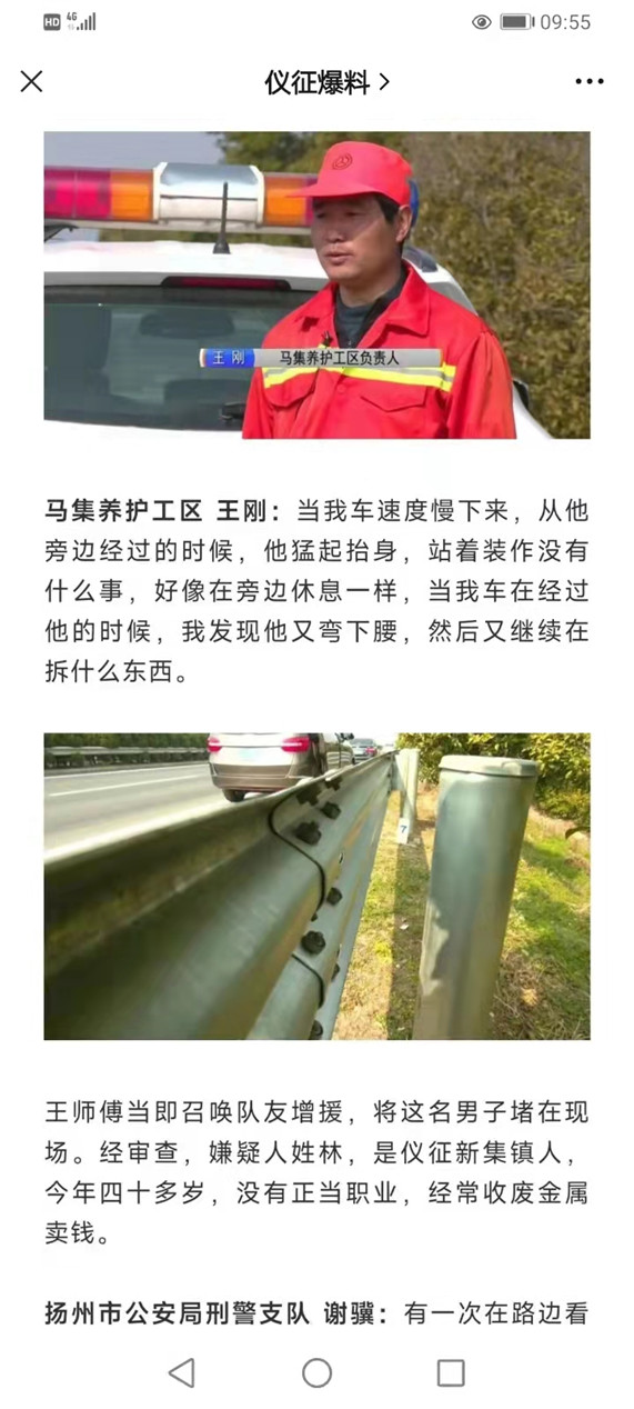 2022年春節(jié)前,儀征境內(nèi)S353、S439等主要省道相繼出現(xiàn)多起不法分子偷盜公路設(shè)施現(xiàn)象,對公路管養(yǎng)產(chǎn)生了嚴(yán)重影響。對此,揚(yáng)州公路管理部門高度重視,召開專題會議,要求相關(guān)公路養(yǎng)護(hù)單位對重點路段加強(qiáng)巡察力度,堅決打擊偷盜公路設(shè)施的違法行為,確保公路設(shè)施的安全。為貫徹落實揚(yáng)州及儀征公路管理部門的指示要求,集團(tuán)養(yǎng)護(hù)公司制定了處置預(yù)案,成立工作專班,安排人員分時段輪流上路巡查,著重對公路設(shè)施失竊多發(fā)路段增派人手、增加頻次,決心將不法分子繩之以法。 2月18日晚19:30,馬集工區(qū)副主任王剛、十五里墩工區(qū)養(yǎng)護(hù)工闞淼駕駛車輛上路巡查,大約20:50左右,兩名巡查人員檢查到S353K159+900下行線時,突然發(fā)現(xiàn)前方有一名可疑男子正在拆卸防撞護(hù)欄的連接構(gòu)件防阻塊。見此,兩名巡查人員保持沉著冷靜,按照預(yù)案流程將車停靠路邊進(jìn)行觀察,同時迅速通知正在S439巡察的同事趕來支援。等待過程中,兩名巡查人員發(fā)現(xiàn)該可疑男子持續(xù)將拆卸的防阻塊裝車。 支援的同事趕到現(xiàn)場后,巡查人員立即上前控制住正在實施盜竊的該可疑男子,并拍照取證,現(xiàn)場該可疑男子是以電動汽車作為交通工具,已經(jīng)拆卸了22塊防阻塊,在人贓俱獲的現(xiàn)場,該可疑男子仍然狡辯。隨即,巡查人員向馬集派出所報警,公安機(jī)關(guān)及時出警,對該可疑男子進(jìn)行現(xiàn)場調(diào)查取證,最后該可疑男子被民警帶至馬集派出所作進(jìn)一步調(diào)查處理。本次養(yǎng)護(hù)工區(qū)巡查人員成功阻止偷盜公路設(shè)施的違法行為,有力打擊了不法分子的囂張氣焰,切實維護(hù)了公路設(shè)施的安全。