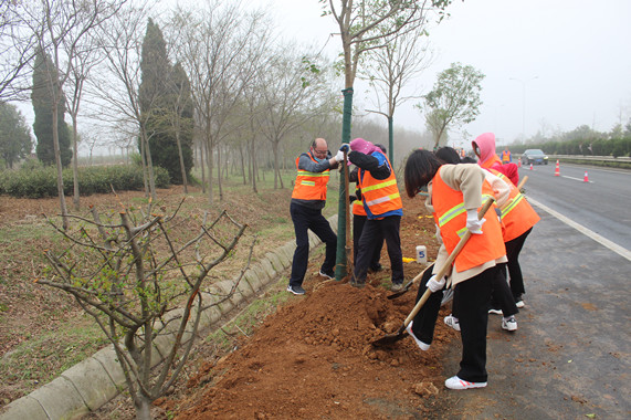 3月14日上午,揚州市公路事業(yè)發(fā)展中心組織干部職工前往125省道儀征捺山段開展植樹活動?;顒蝇F(xiàn)場盡管天空飄起了細雨,天氣略顯寒冷,但仍然抵擋不住大家參與植樹的高昂熱情,植樹人員沿著125省道路肩一字排開,有的用鐵鍬培土、有的扶正樹苗、有的提桶澆水,載種下一株株女貞樹苗,每道工序都做得認真仔細,整個植樹活動現(xiàn)場一片熱火朝天的勞動景象。 植樹現(xiàn)場懸掛“多種樹、種好樹、管好樹,讓人民群眾生活環(huán)境美起來”;“植樹造林是實現(xiàn)天藍、地綠、水凈的重要途徑,是最普惠的民生工程”等條幅,為本次活動營造了濃厚氛圍,增強了大家“植綠、護綠、愛綠”的生態(tài)文明意識,充分展現(xiàn)了揚州公路事業(yè)發(fā)展中心干部職工良好的精神風貌。作為儀征境內125省道的養(yǎng)護單位,集團按照儀征市公路管理部門的工作部署,安排旗下養(yǎng)護公司,以及揚州金壩湖農業(yè)科技發(fā)展有限公司對現(xiàn)場布置、樹苗提供、工具準備、防疫管理等進行了全程保障。