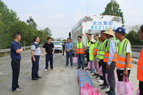 圖為揚州市公路事業(yè)發(fā)展中心殷成勝書記(左二)開展慰問活動