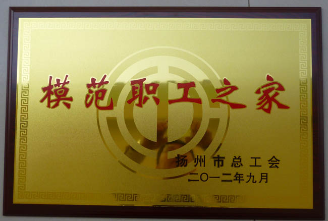 公司工會因工作顯著,9月份,被揚(yáng)州市總工會授予“模范職工之家”榮譽(yù)稱號。