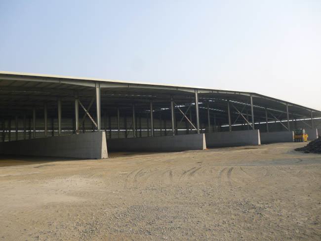 位于儀征市月塘鎮(zhèn)捺山村的公司穩(wěn)定土拌和場一場料倉墻砌筑和鋼結構大棚施工工作已經(jīng)完成,目前正在進行場地硬化施工。位于儀征市馬集鎮(zhèn)岔鎮(zhèn)村解莊組的公司穩(wěn)定土拌和場二場圍網(wǎng)施工和活動板房搭建工作已經(jīng)完成,目前正在進行大門制作及水電安裝施工。圖為建成的料倉墻和鋼結構大棚